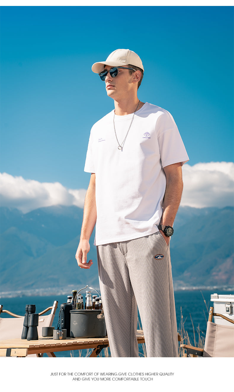 7134 2022 summer national tide heavy cotton high street five-point sleeve short-sleeved T-shirt men