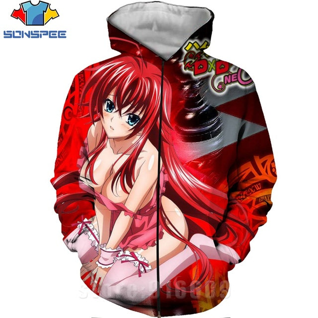 High School DXD Zipper 3D Print Rias Gremory Anime Sweatshirt Jacket Harajuku Cartoon Hoodies Kawaii Sexy Girl Shirt Zip hoodie